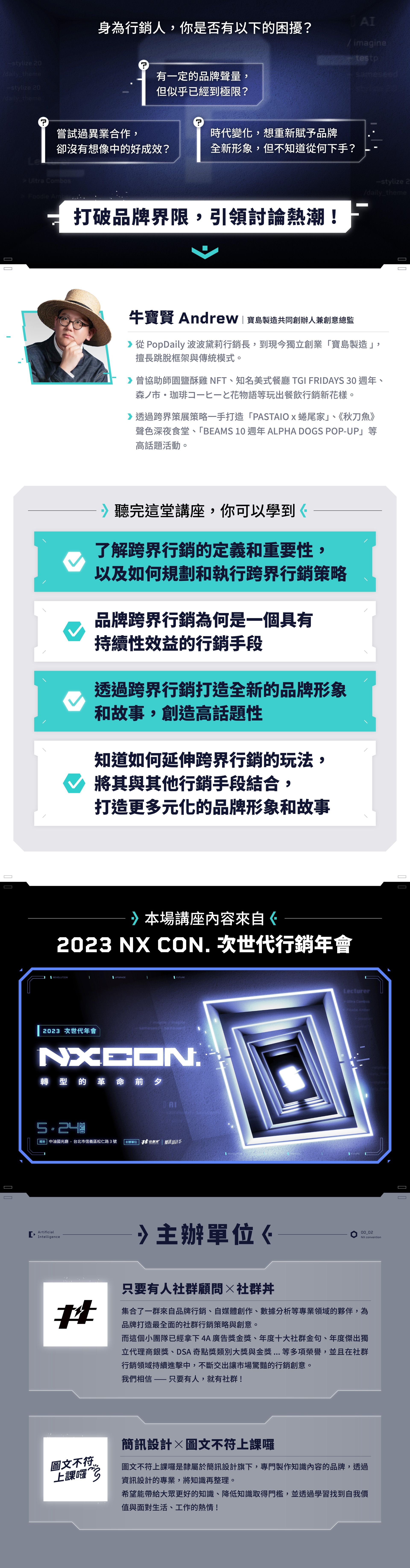 品牌如何透過跨界行銷說出全新故事,引發討論熱潮?|寶島製造共同創辦人兼創意總監 牛寶賢(Andrew)|2023 NX CON. 次世代行銷年會